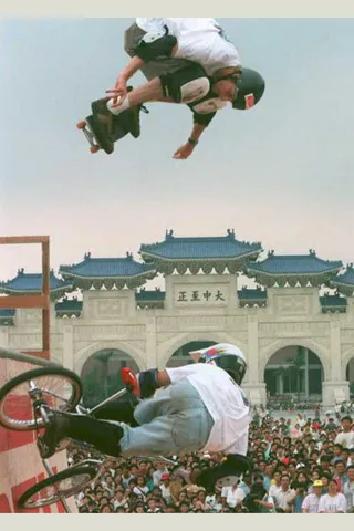 Tony Hawk and Mat Hoffman performing in Taipei, 1995