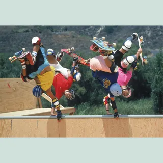 Since its inception, skateboarding has been so entrenched in capturing itself that its history depends largely on the history of recorded skateboarding—and the sport’s progression is completely tied up with its visual output. The symbiosis between skate videos and skaters accelerates innovation. The better the tricks that are presented, the more hyped skaters are to try them. Those tricks are then refined and reconfigured, propelling the professionals to up their game—all mediated through a lens. From the scuzzy sidewalks of California in the 1960s to its 2021 inauguration as an Olympic sport in Tokyo, skateboarding has undergone significant changes in style, technique and technology, refining its imagery on screens great and small.